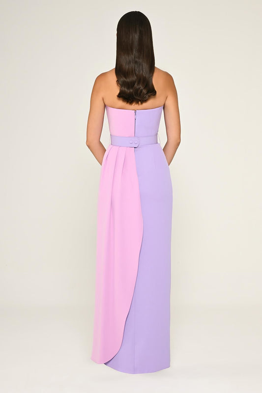 Strapless Waist Embroidered Belt Crepe Long Dress